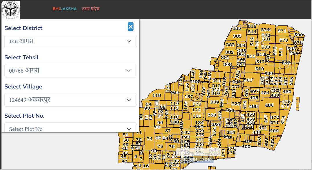 - जिला नाम, तहसील, अपना गाँव नाम और प्लॉट संख्या को चुनें।